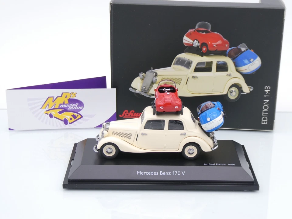 Black Deal Schuco 02270 # Mercedes Benz 170V mit 2x Brütsch Mopetta beladen 1:43