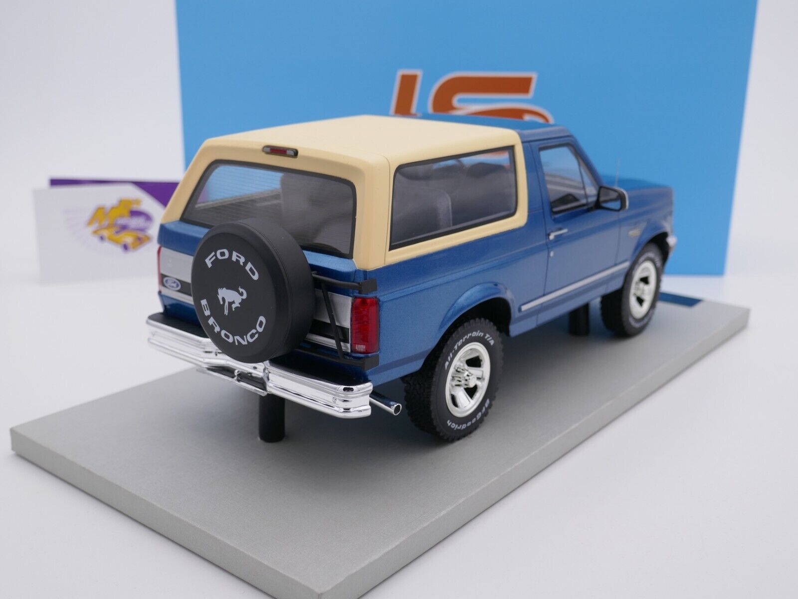 FORD Bronco Baujahr 1992 in " blaumetallic-beige " mit schwarz-grauer Innenausstattung.