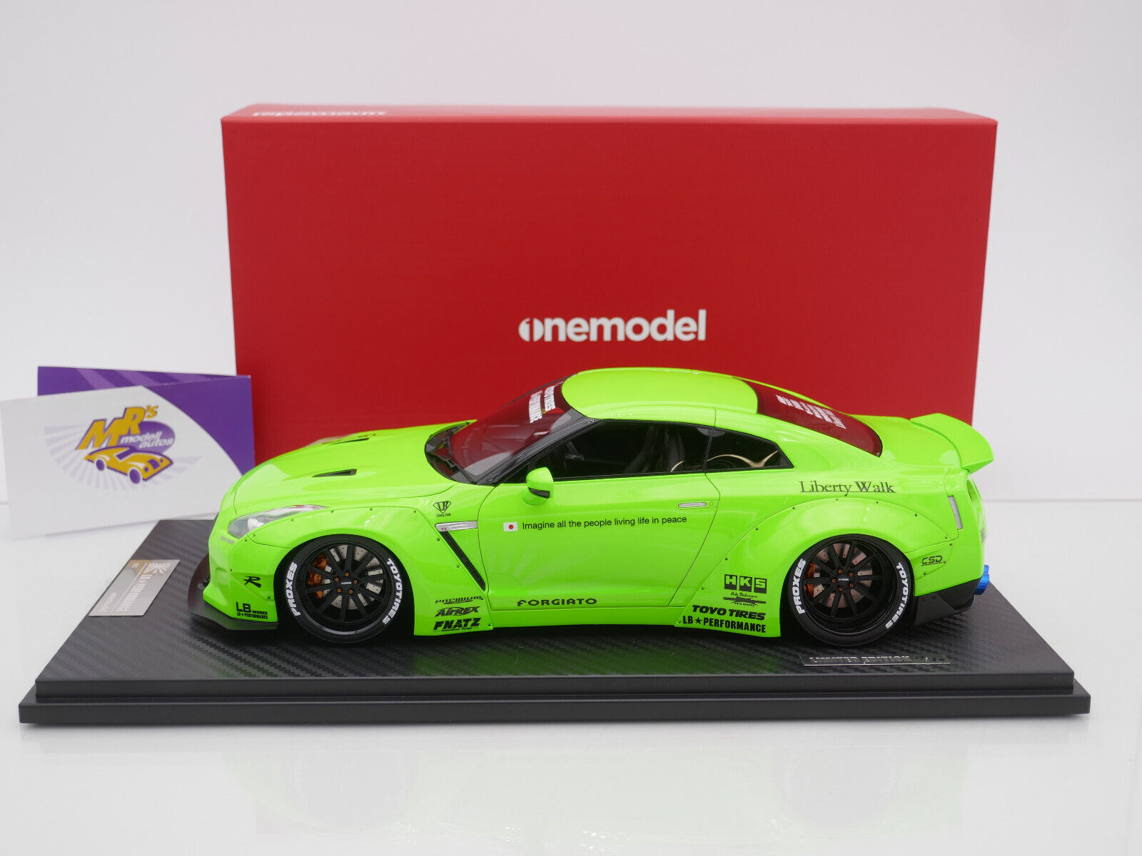 Onemodel 8 # Nissan GT-R R35 Duck Wing Baujahr 2008 " Liberty Walk Performance - Fluorescent Neon Green " 1:18 Nur 30 Stück !!