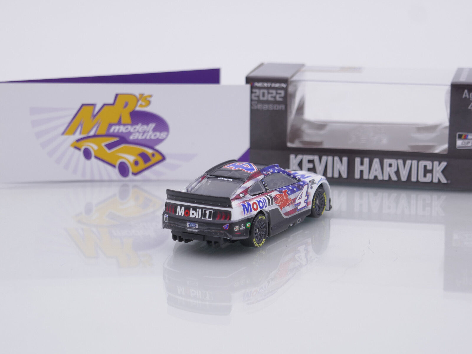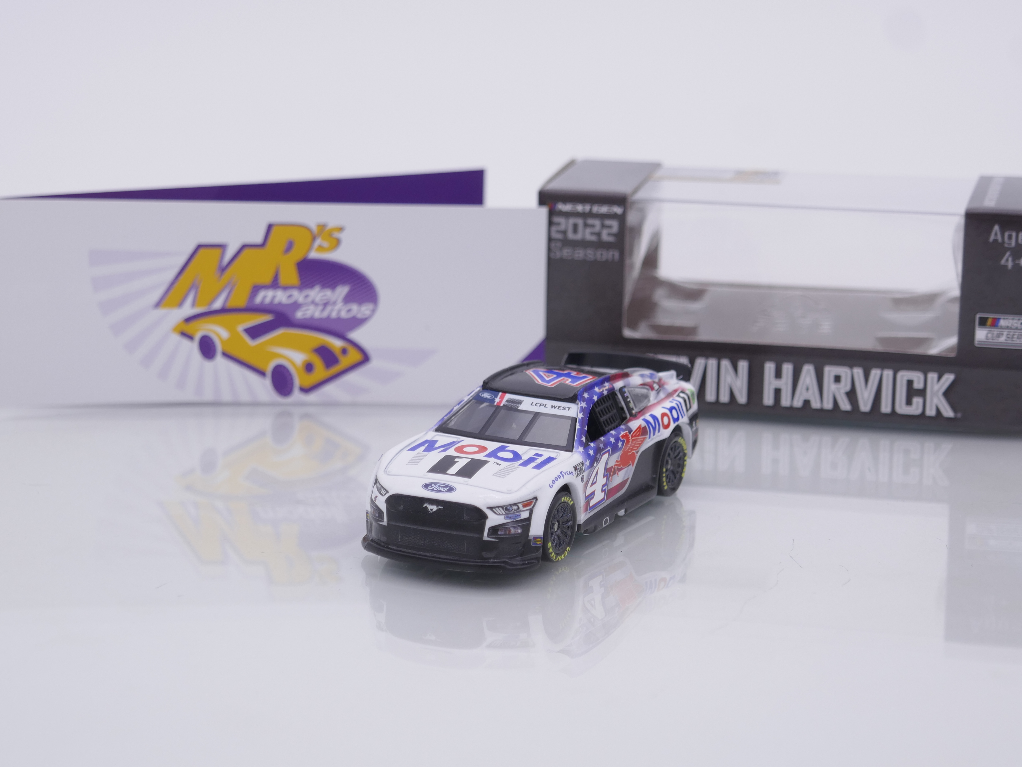 Ford Mustang NEXT GEN (GEN 7) mit Startnummer 4 aus der NASCAR Cup Saison 2022 des Fahrers " Kevin Harvick - Mobil 1 Salutes / Patriotic " vom Team Stewart Haas Racing.