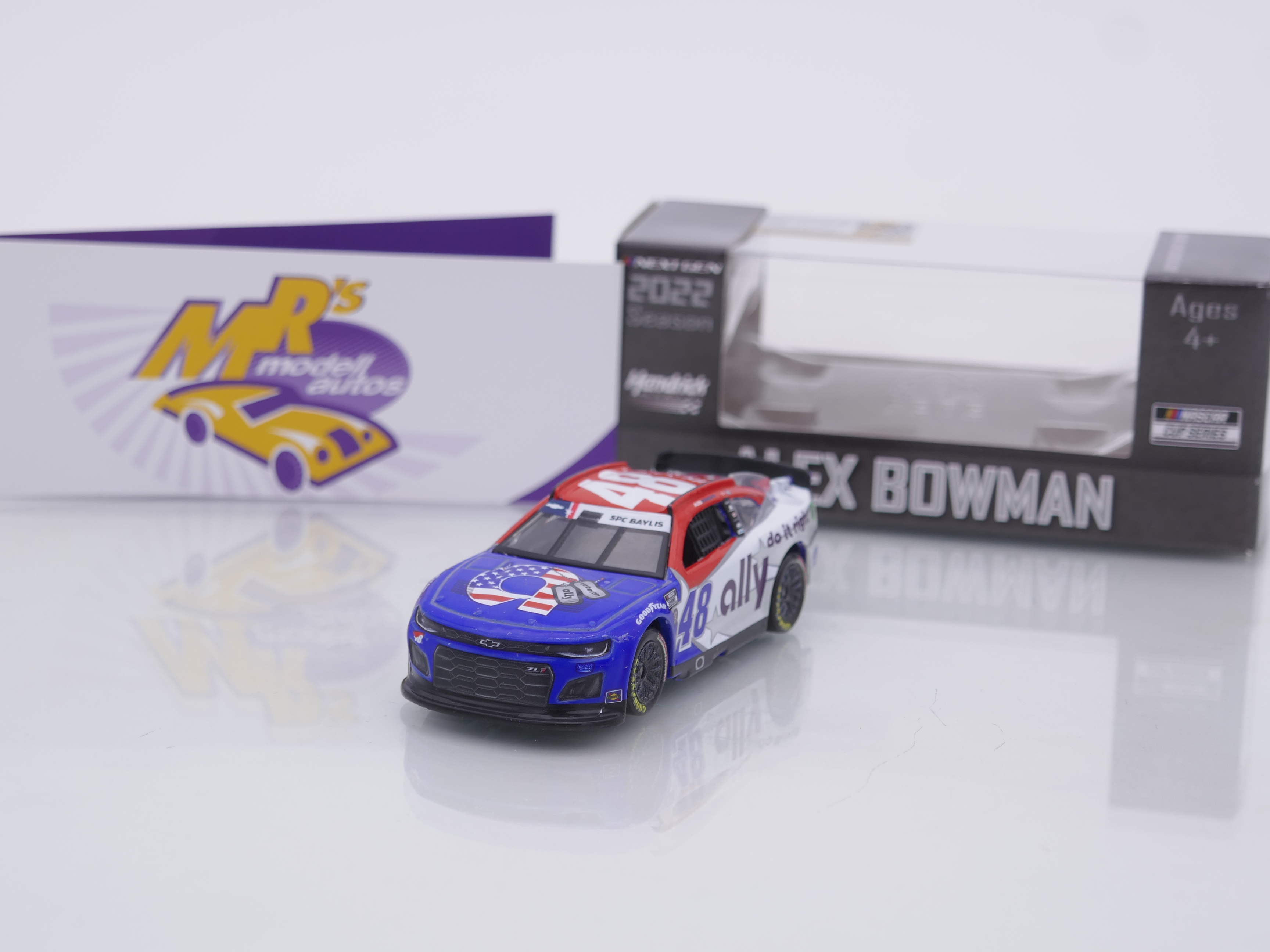 Chevrolet Camaro ZL1 NEXT GEN (GEN 7) mit Startnummer 48 aus der NASCAR Cup Saison 2022 des Fahrers " Alex Bowman - Ally Salutes / Patriotic " vom Team Hendrick Motorsports.