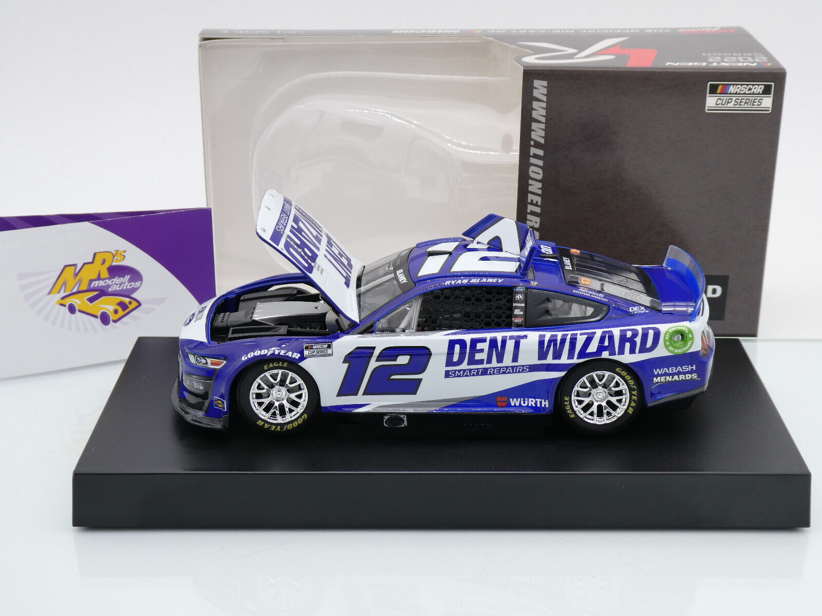 Ford Mustang NEXT GEN (GEN 7) mit Startnummer 12 aus der Nascar Cup Saison 2022 des Fahrers " Ryan Blaney - Dent Wizard " vom Team Penske.