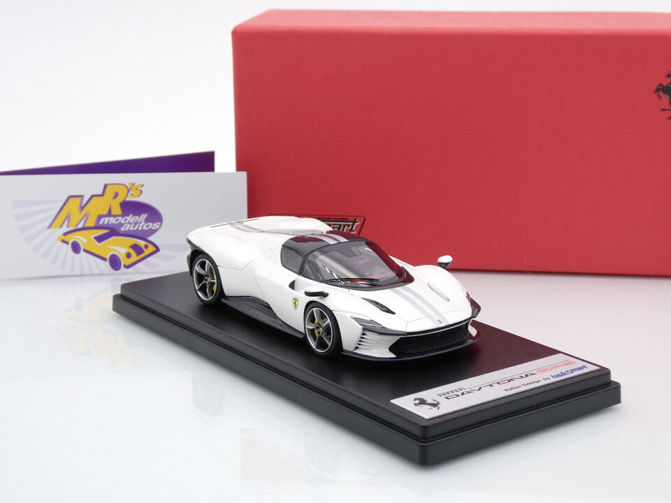 Ferrari Daytona SP3 Closed Roof Baujahr 2023 in " weißmetallic-silber (Pearl White / Silver) " mit dunkelroter Innenausstattung.