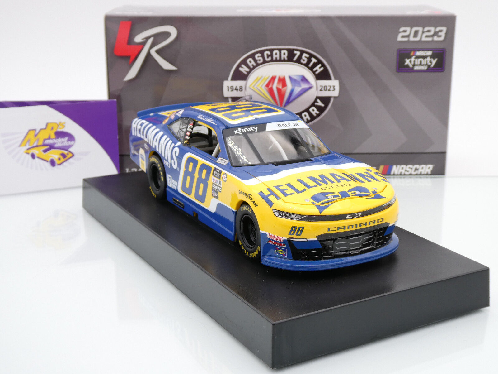 Chevrolet Camaro mit Startnummer 88 aus der Nascar Xfinity Saison 2023 des Fahrers " Dale Earnhardt Jr. - Hellmann's Real Mayonnaise " vom Team JR Motorsports.