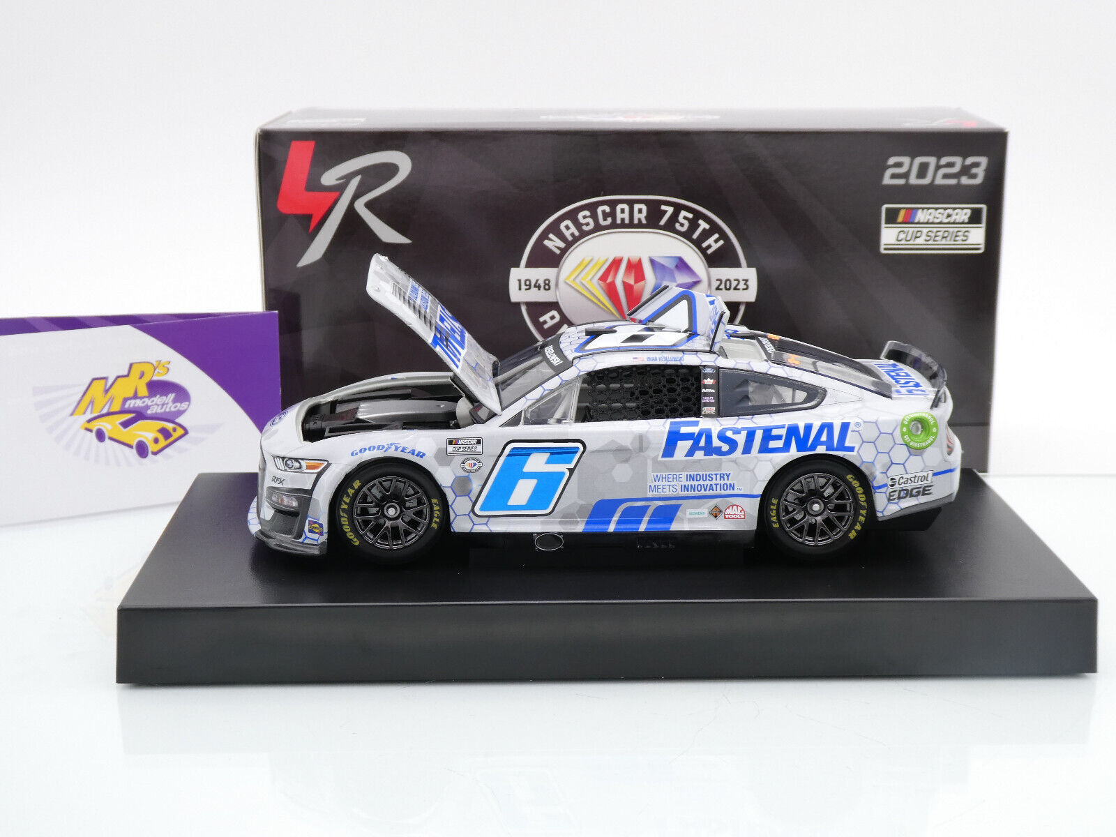 Ford Mustang NEXT GEN (GEN 7) mit Startnummer 6 aus der Nascar Cup Saison 2023 des Fahrers " Brad Keselowski - Fastenal " vom Team RFK Racing. Foil Number !!