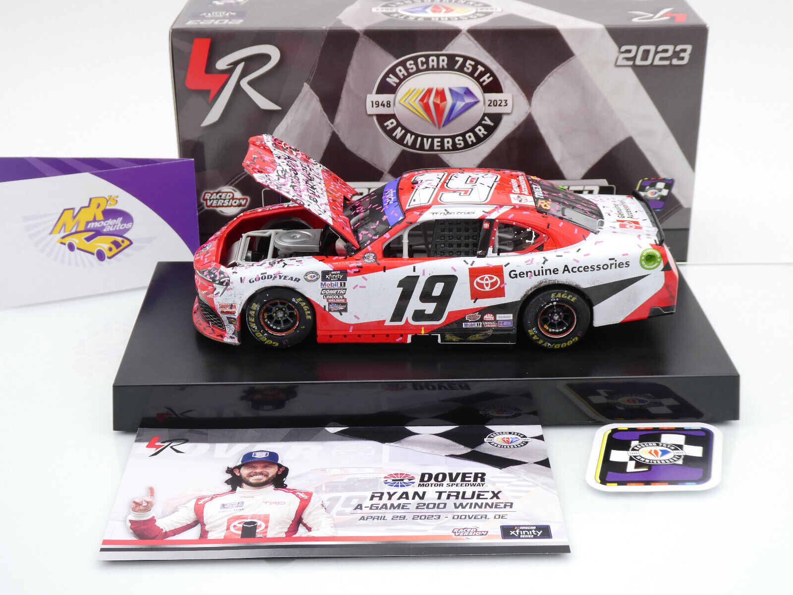 Toyota Supra mit Startnummer 19 Dover Race Winner Xfinity 2023 des Fahrers " Ryan Truex - Toyota Geniune Accessories " vom Team Joe Gibbs Racing.