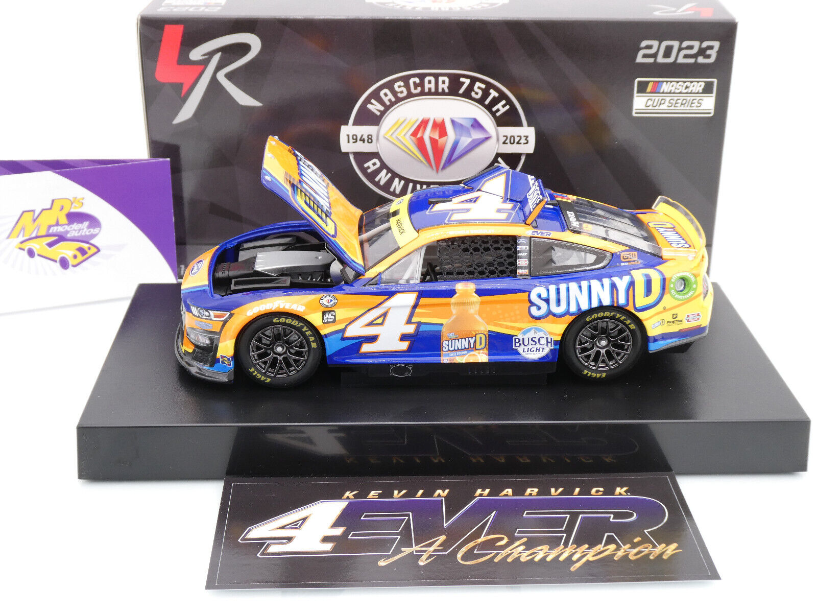 Ford Mustang NEXT GEN (GEN 7) mit Startnummer 4 aus der Nascar Cup Saison 2023 des Fahrers " Kevin Harvick - Sunny D Orange Juice " vom Team Stewart-Haas Racing.