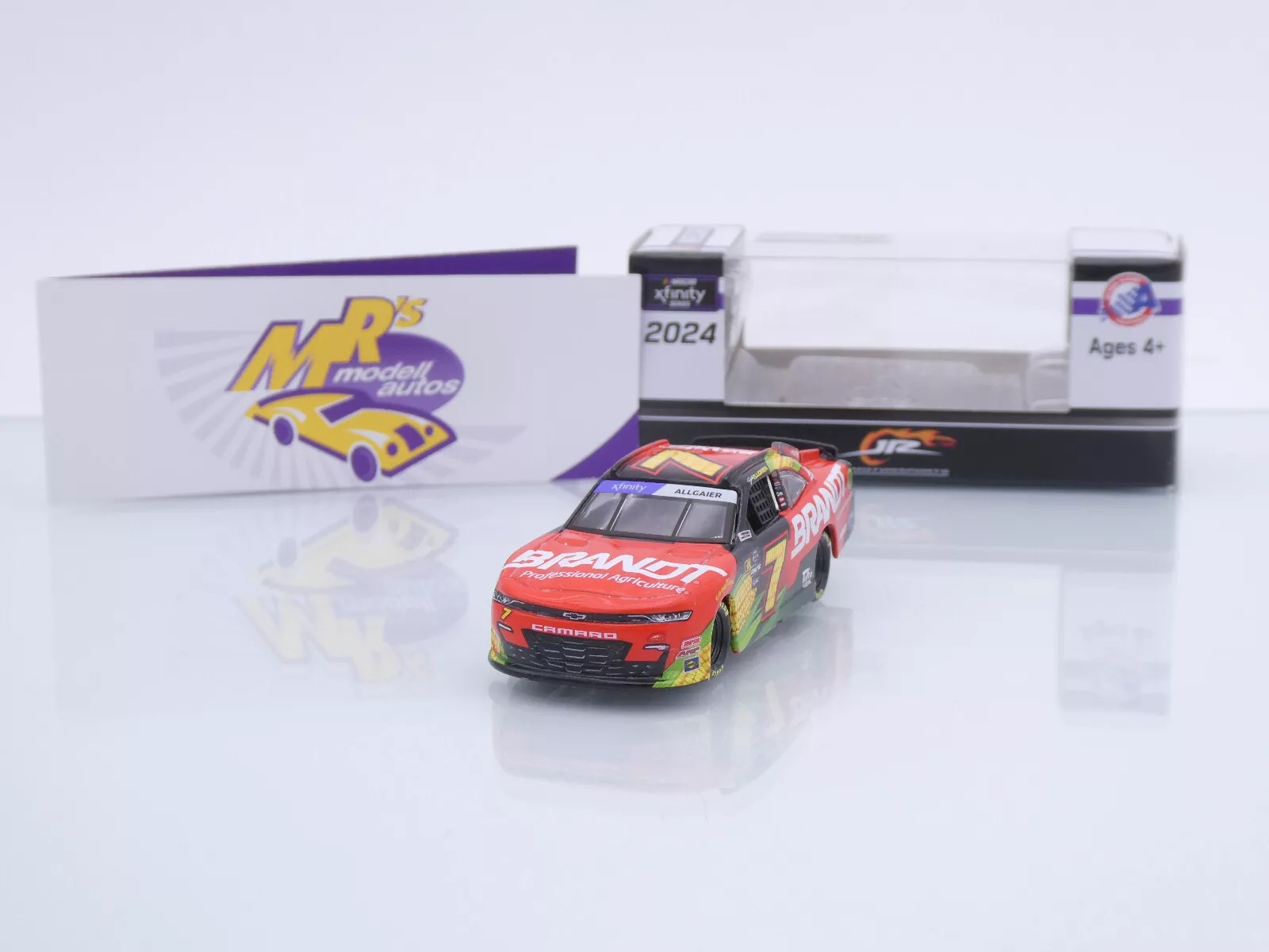 Chevrolet Camaro mit Startnummer 7 aus der Nascar Xfinity Saison 2024 des Fahrers " Justin Allgaier - Brandt " vom Team JR Motorsports.