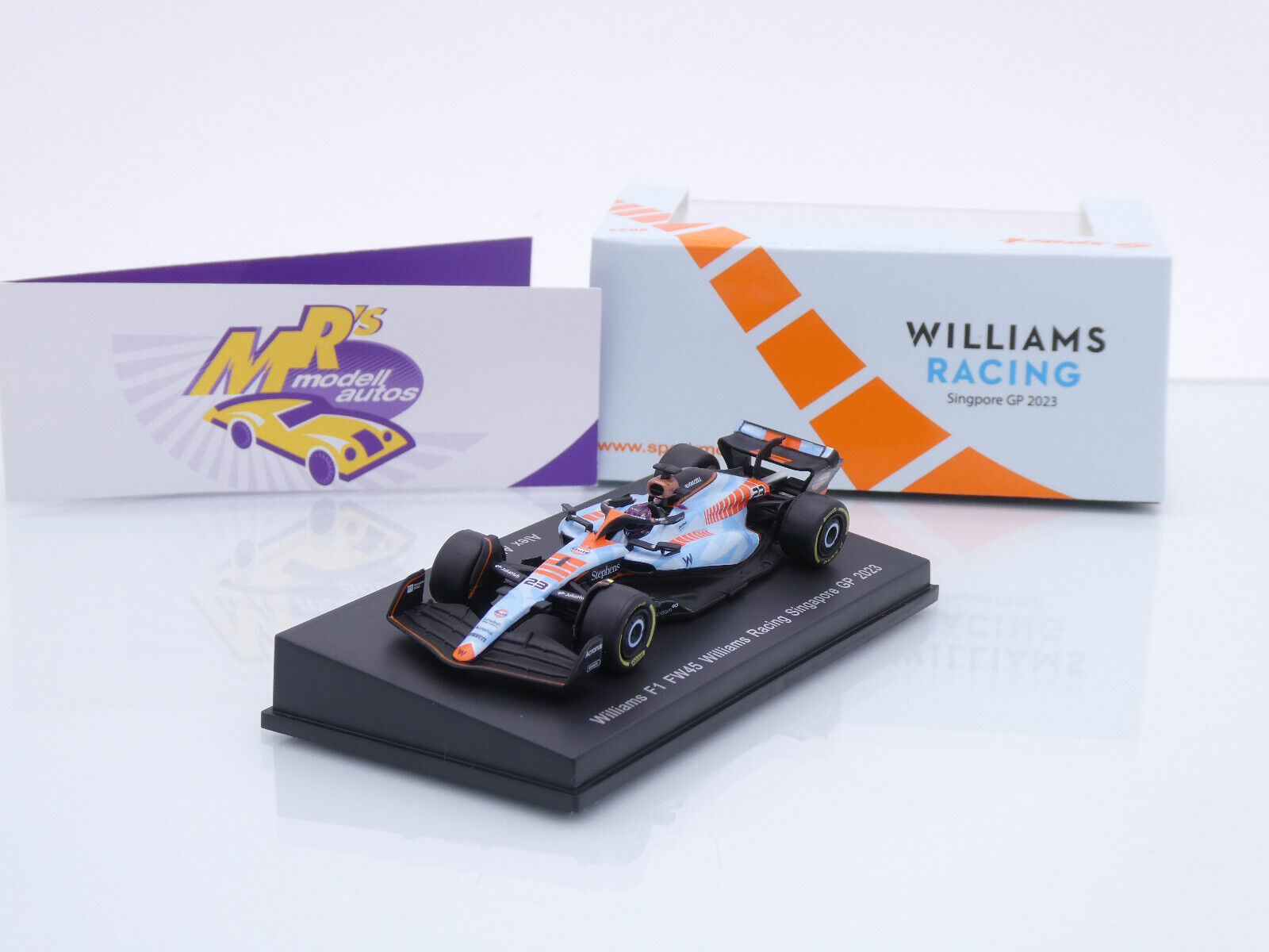 Williams FW45 F1 mit Startnummer 23 vom Singapur Grand Prix 2023 des Fahrers " Alex Albon " vom Team Williams GULF Racing.