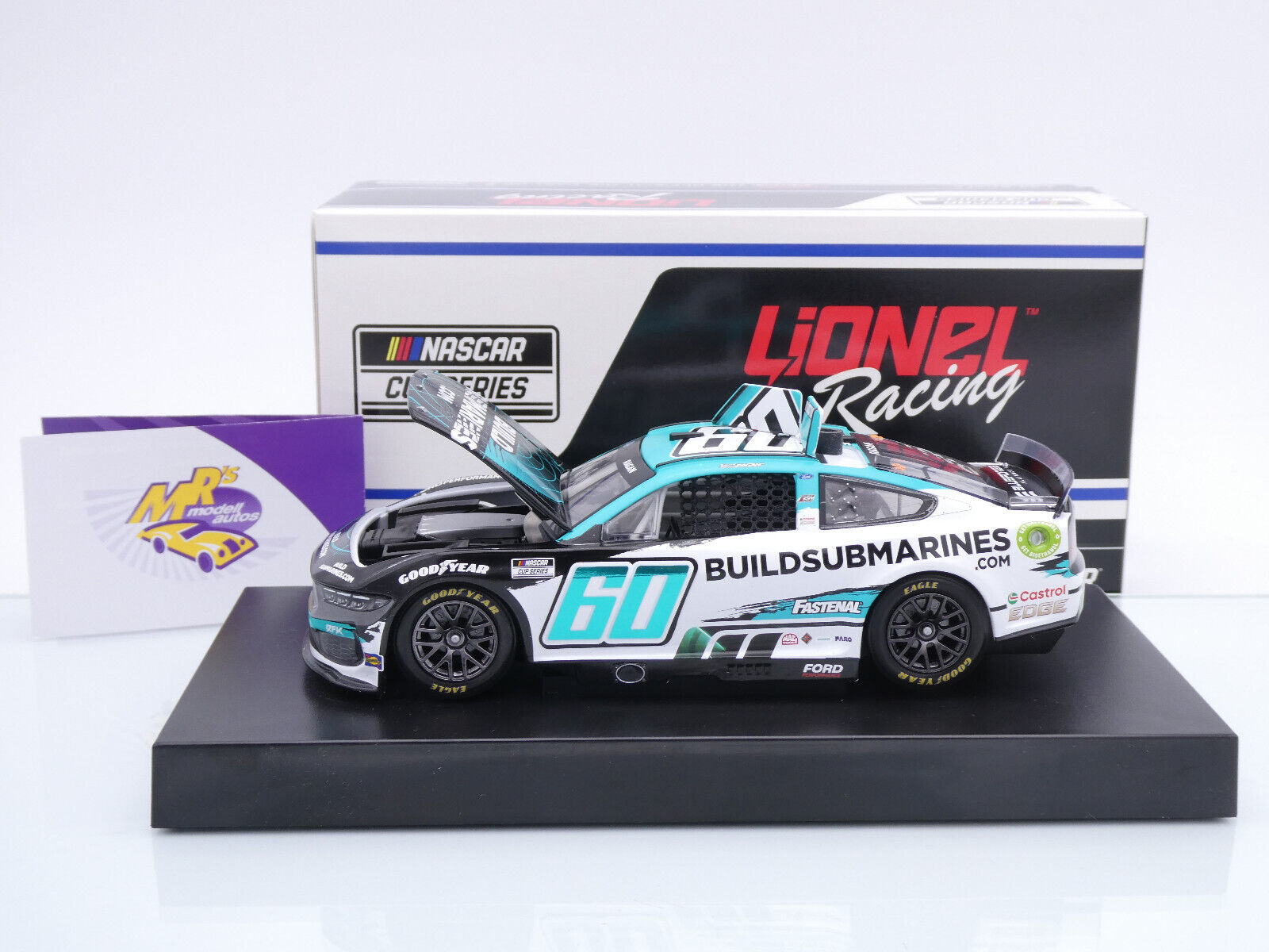 Ford Mustang Dark Horse NEXT GEN (GEN 7) mit Startnummer 60 aus der Nascar Saison 2024 des Fahrers " David Ragan - BuildSubmarines.com " vom Team RFK Racing.