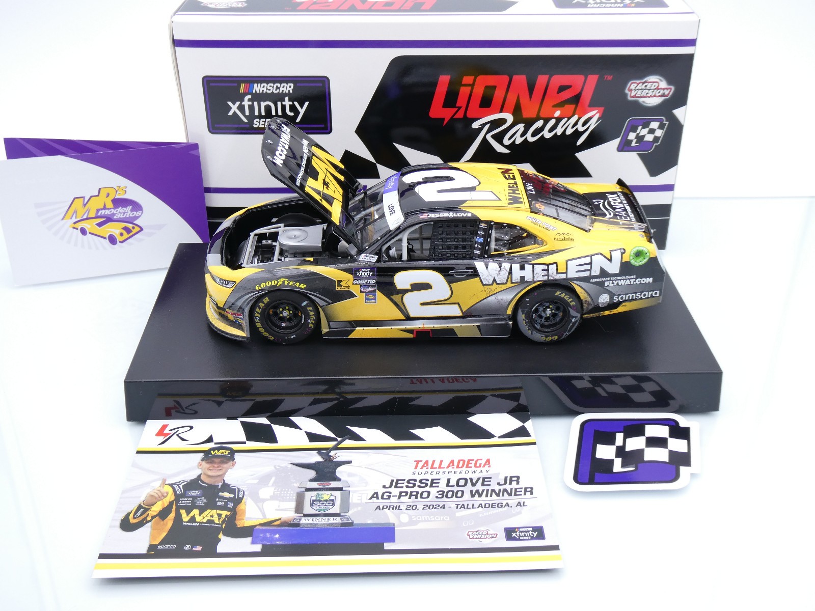 Chevrolet Camaro mit Startnummer 2 Talladega Spring Race Winner Xfinity 2024 des Fahrers " Jesse Love - FlyWAT (Whelen Engineering) " vom Team Richard Childress Racing.