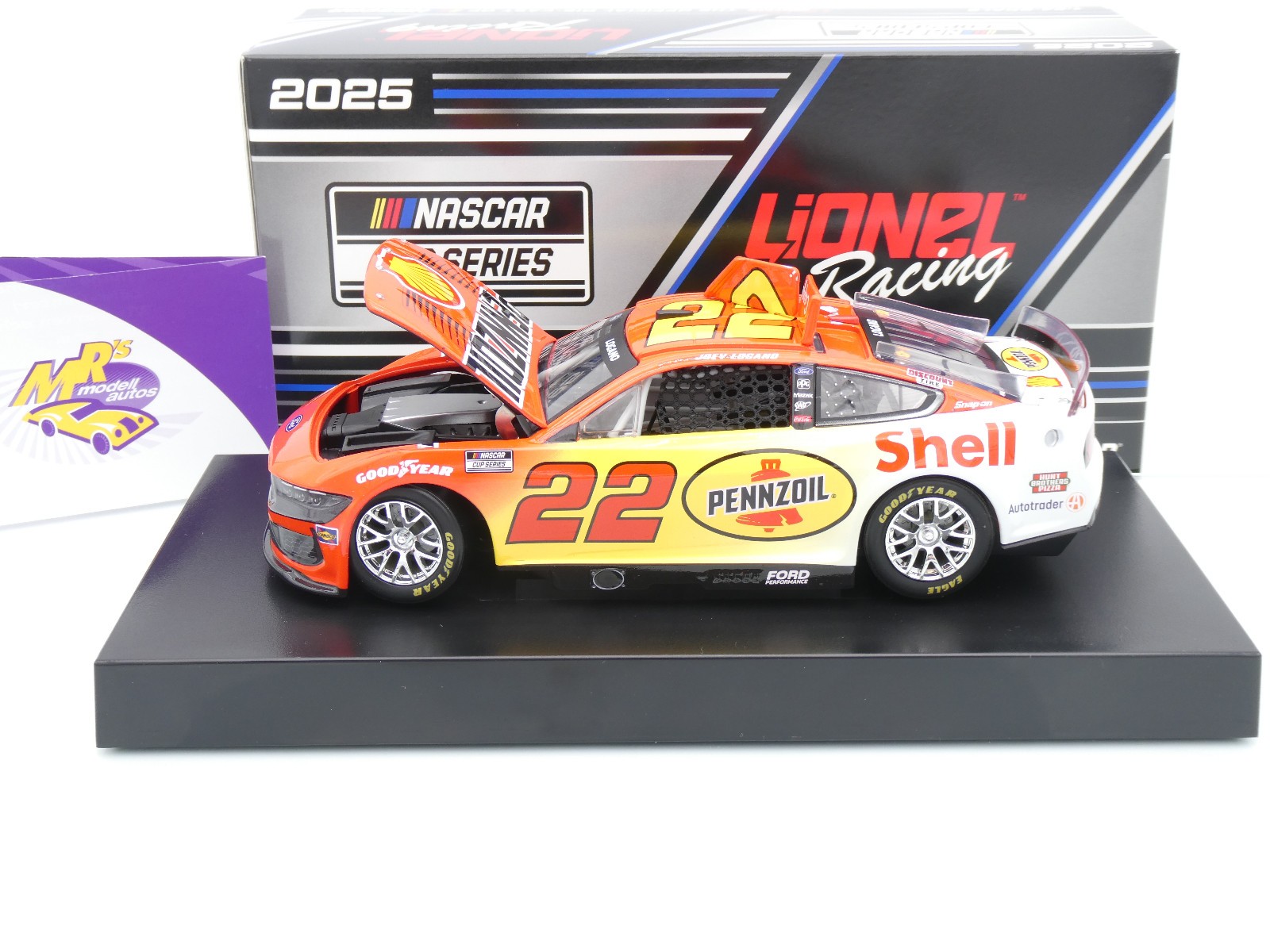 Ford Mustang Dark Horse NEXT GEN (GEN 7) mit Startnummer 22 aus der NASCAR Saison 2025 des Fahrers " Joey Logano - Shell / Pennzoil Special " vom Team Penske.