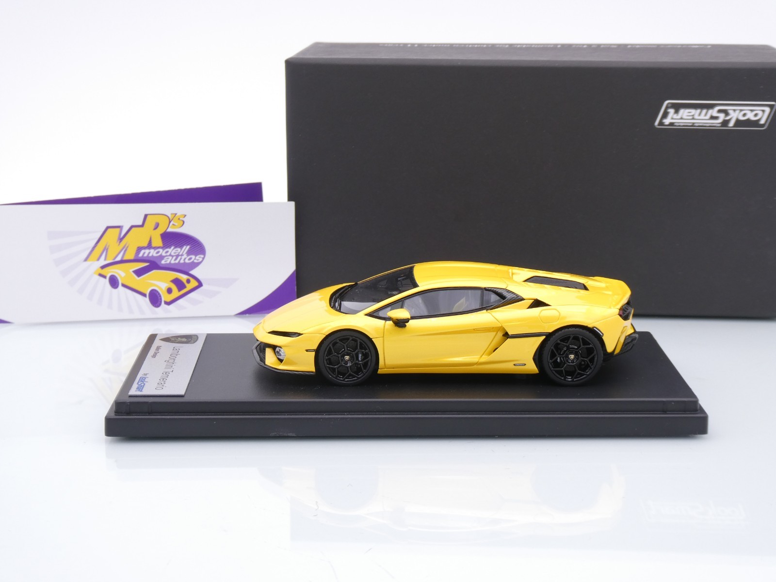 Lamborghini Temerario Sportwagen Baujahr 2024 in " gelbmetallic ( Giallo Inti Metallic ) " mit schwarz-gelber Innenausstattung.