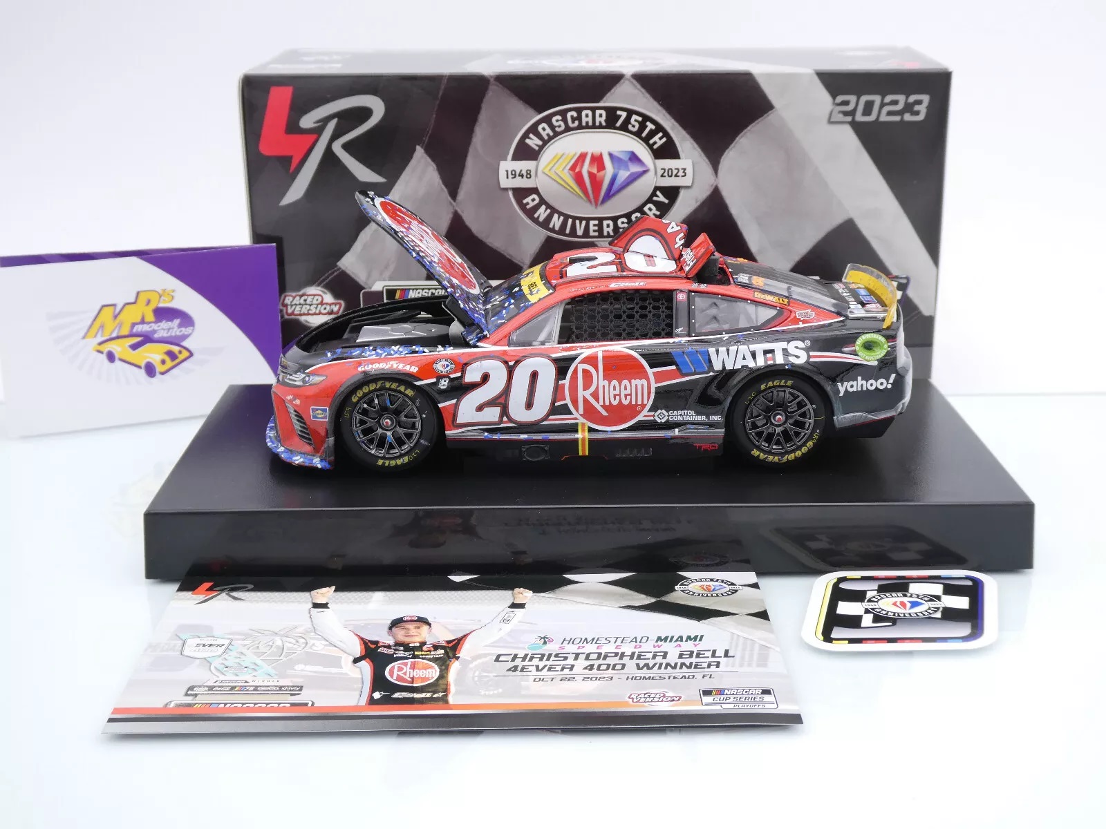 Toyota Camry NEXT GEN (GEN 7) mit Startnummer 20 Homestead-Miami Race Winner 2023 des Fahrers " Christopher Bell - Rheem / Watts " vom Team Joe Gibbs Racing.